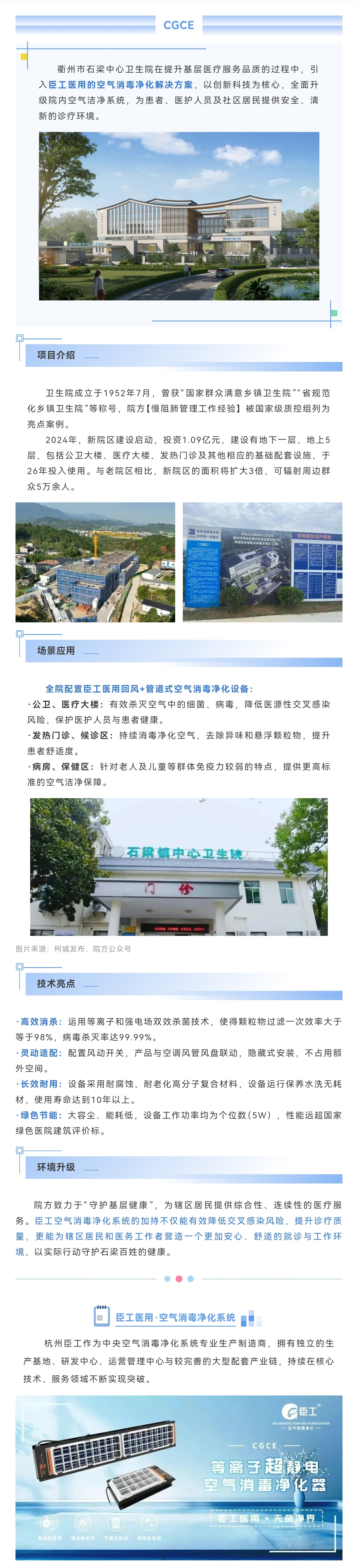 赋能健康医疗新环境 ——衢州市石梁中心卫生院携手臣工医用打造安全洁净诊疗空间